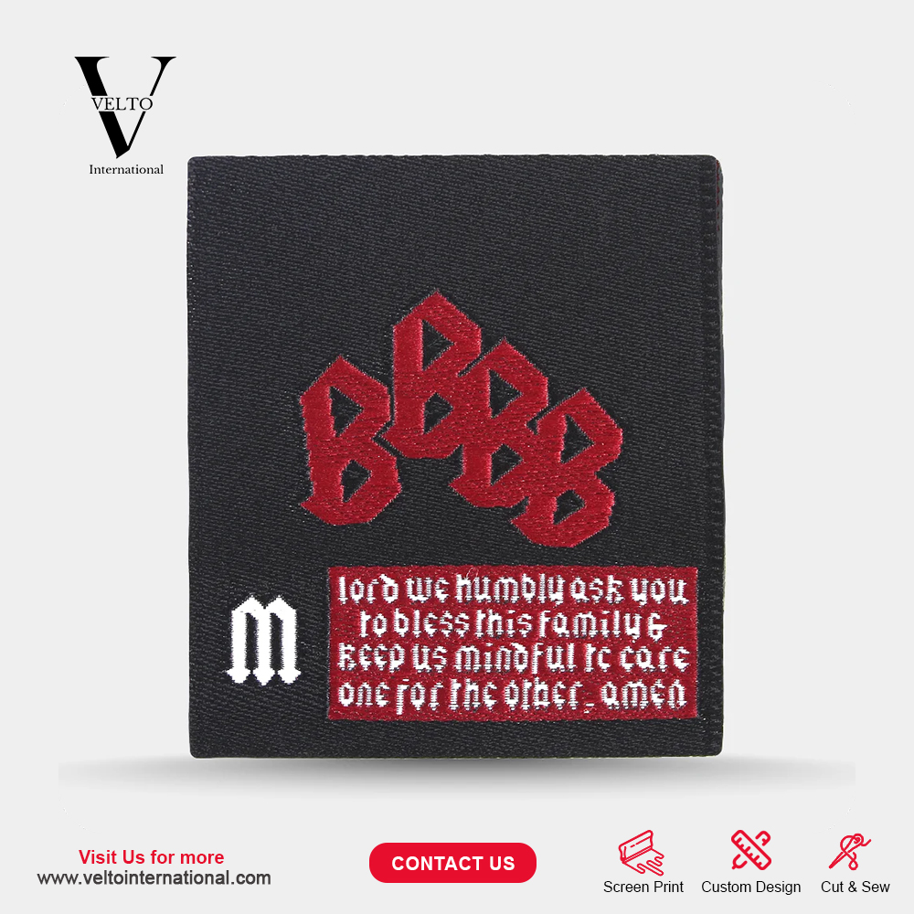 Velto International Woven Labels add a professional and premium touch to your products. Designed for durability and clarity, these labels showcase your brand with sharp details and vibrant colors, making them ideal for clothing, accessories, and uniforms.